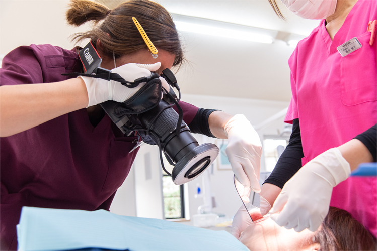 歯の汚れや歯石の有無、歯茎の腫れや出血がないか、歯周ポケットの深さ、歯垢(プラーク)や磨き残しのチェックなど、お口の状態のチェック・検査を行います。